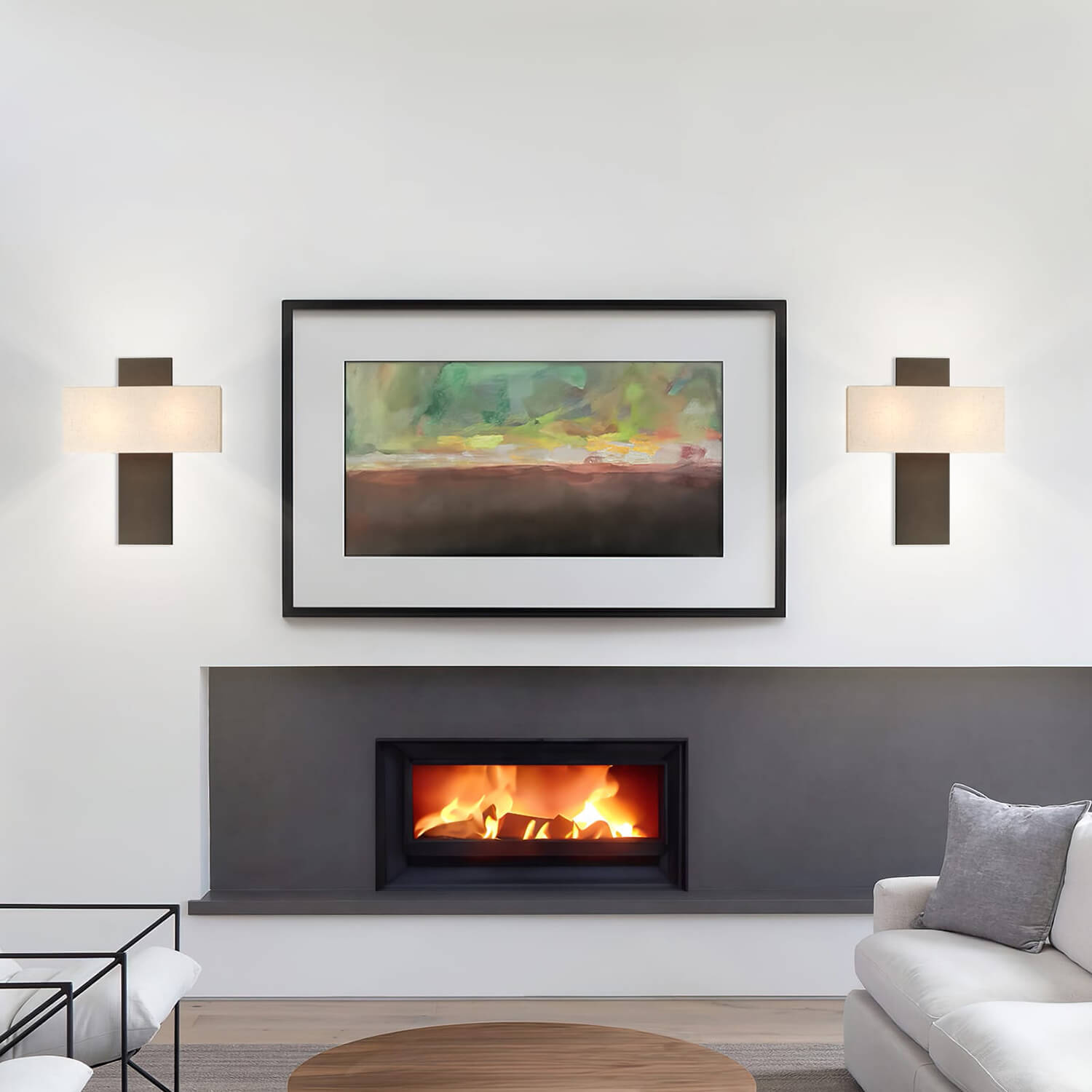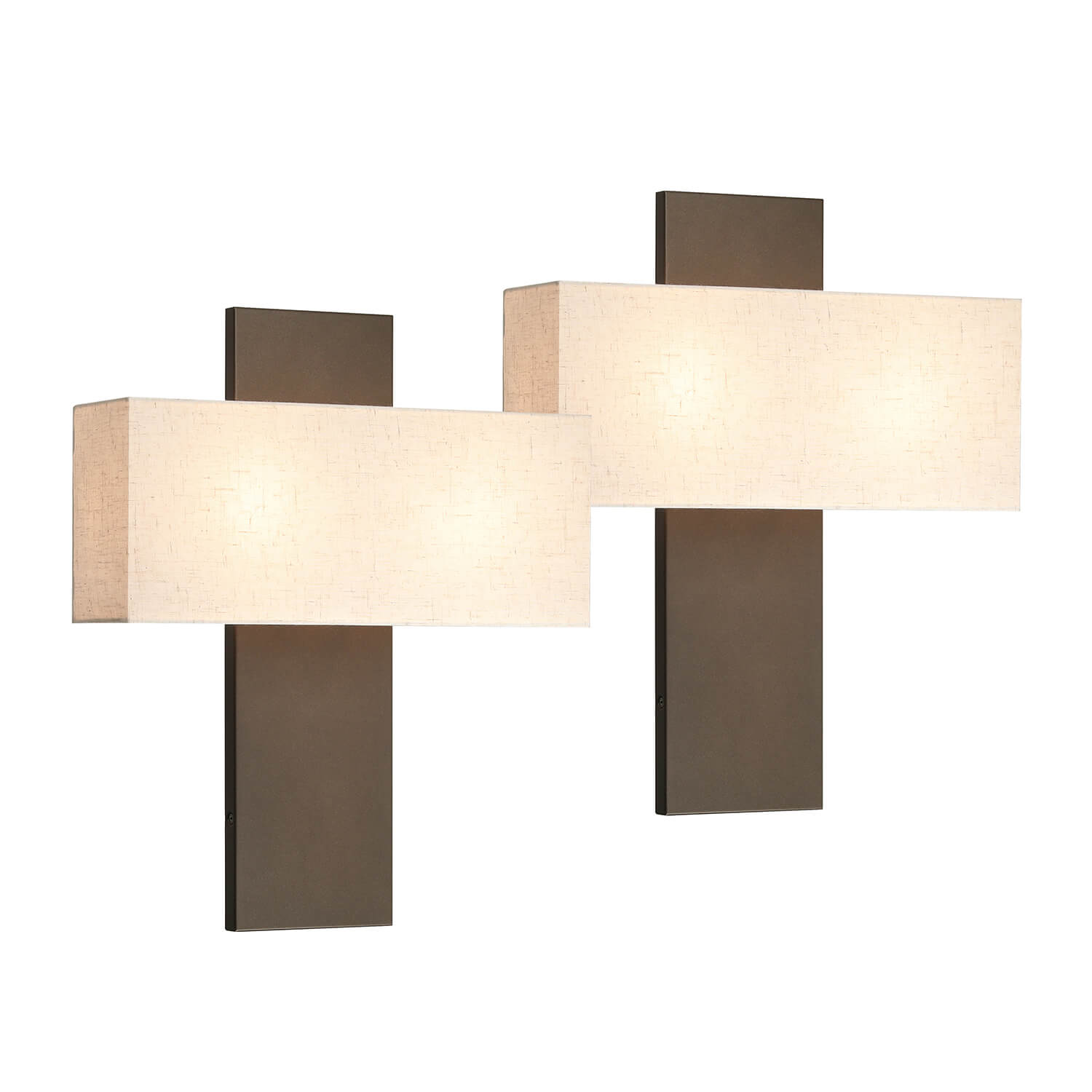 - MODERN DESIGN: Wall Lamps for Bedrooms Set of 2 with dark bronze finish iron large backplate and trimless retangle fabric shade that make a great addtion to your living space or room of choice adding a touch of warming astmophere.