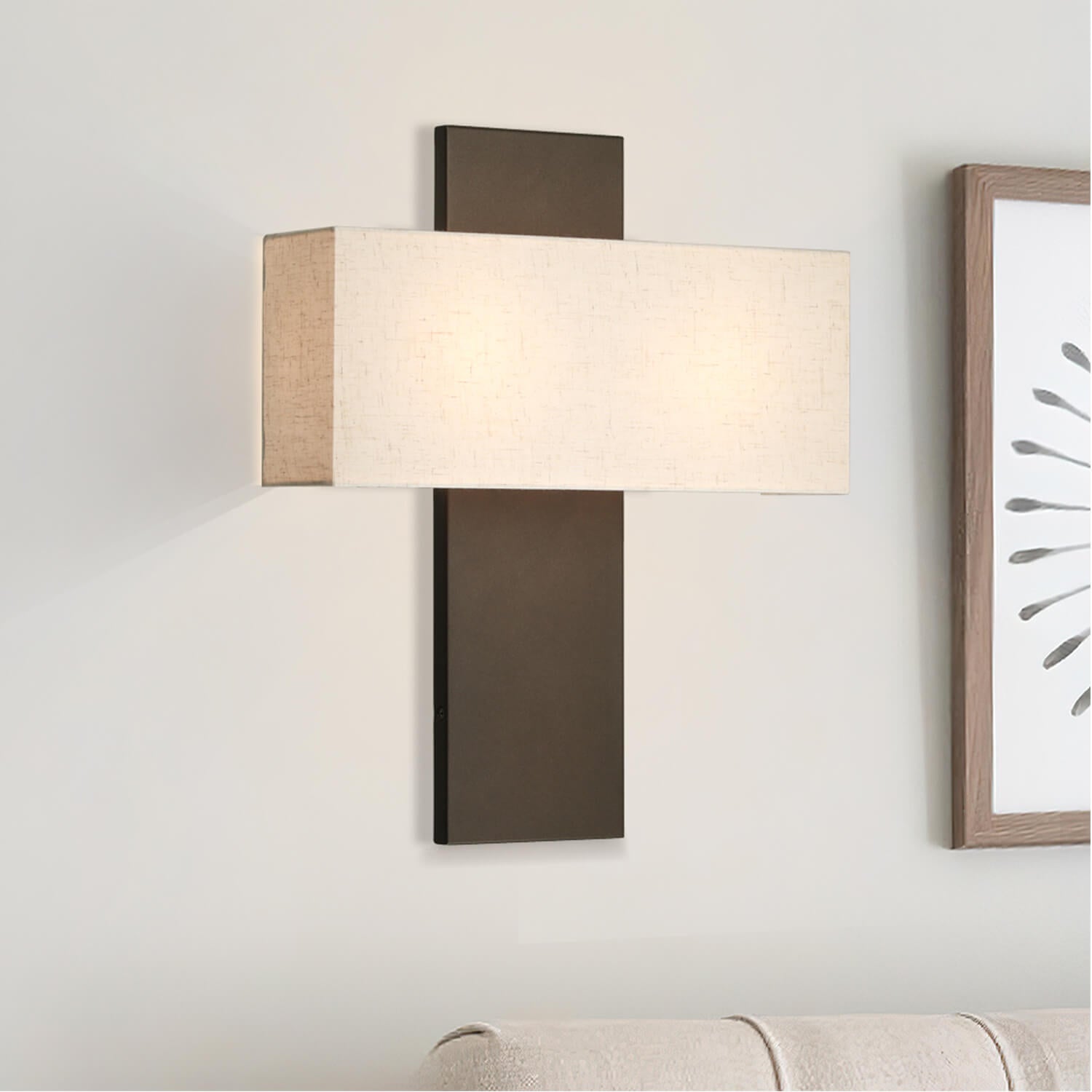 - FEATURE: Hardwired. Modern bedroom wall lamp with iron material is not only considerably light but mechanically strong and durable. Rectangle Fabric shade of this wall mounted lamp that disperses light in all directions, perfect for lighting general areas and makes reading at night so much better.