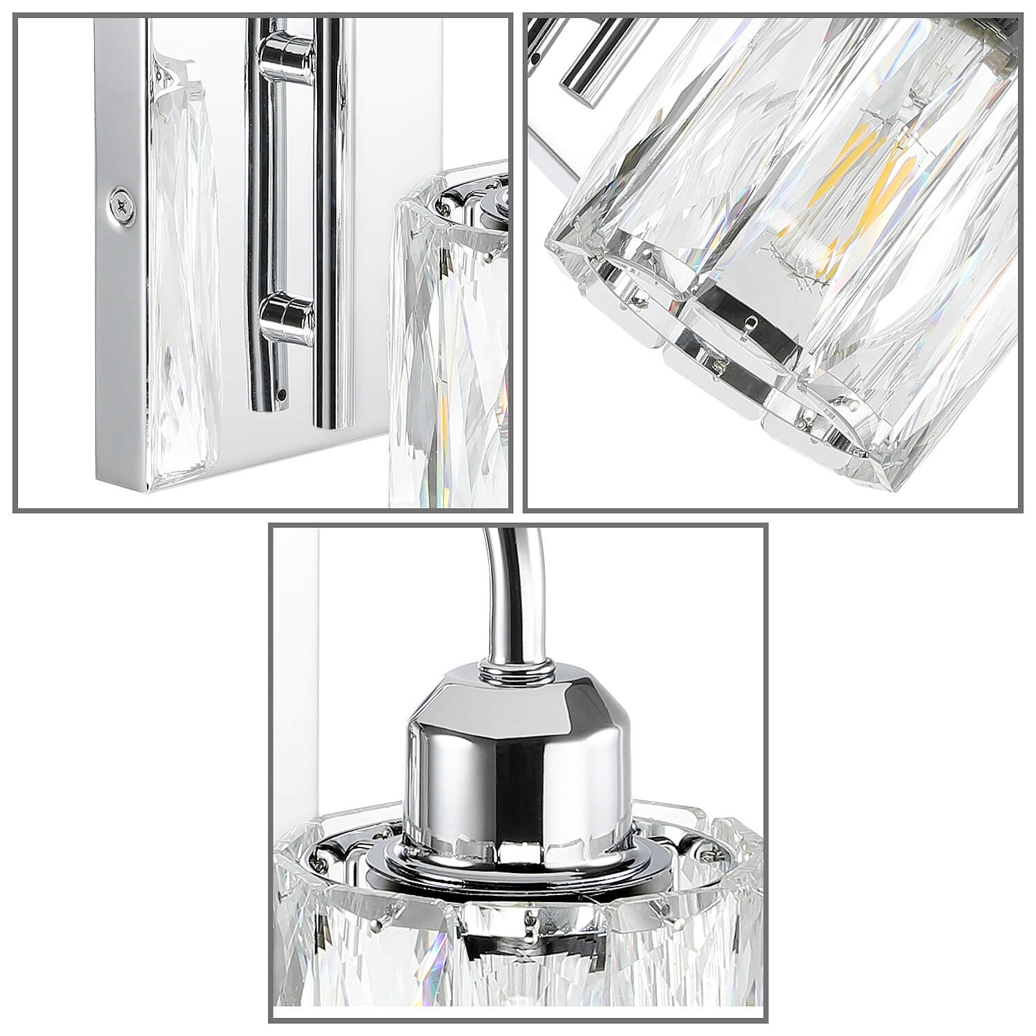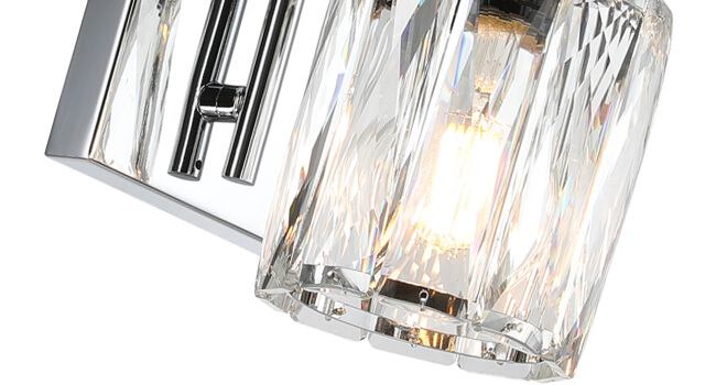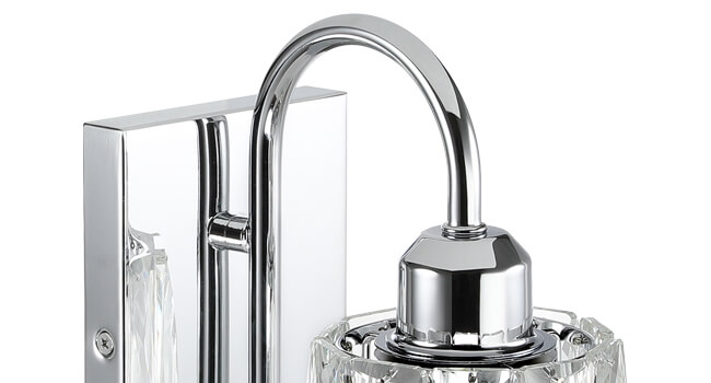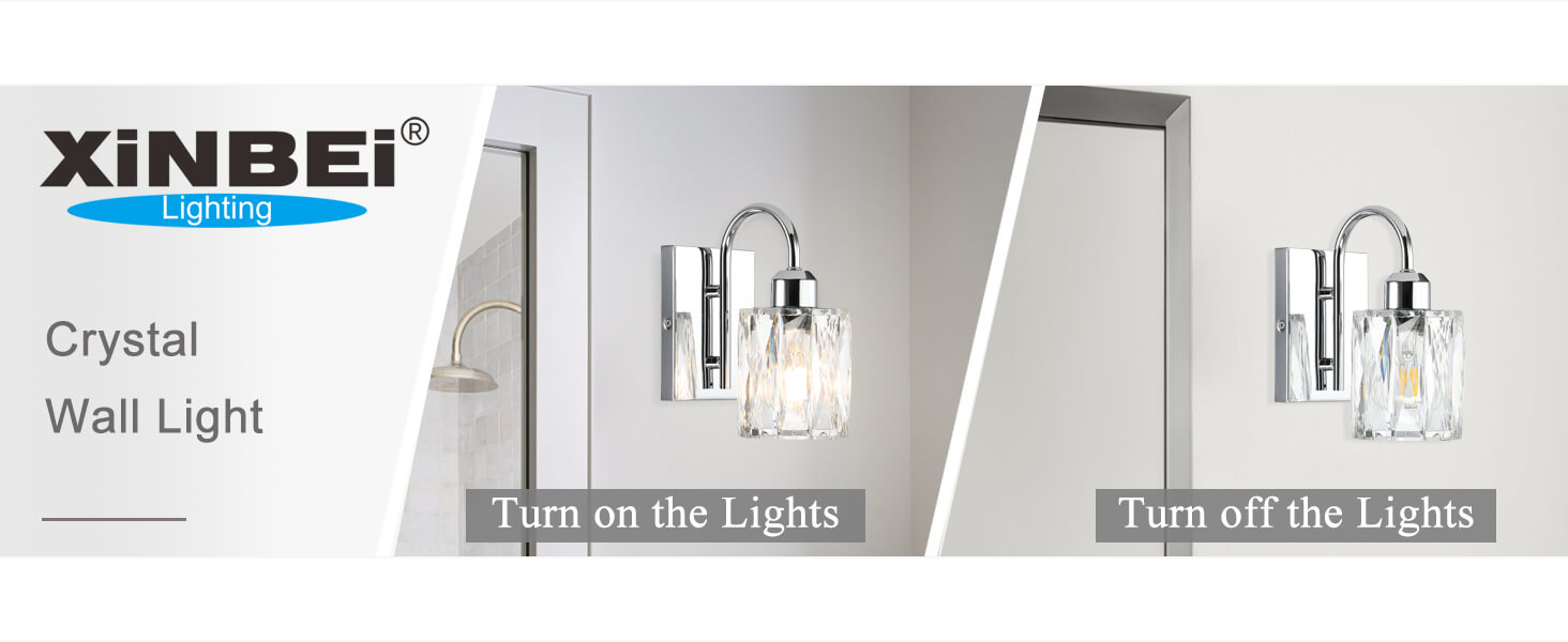 - MODERN DESIGN: Wall Sconce bathroom is made of clear K9 crystal shade and metal backplate and arm that is corrosion and moisture resistant, sturdy and durable. Mounting this 1 light chrome bathroom light fixture can create a beautiful and warming lighting effect; chrome wall sconce is with simple and luxurious design shows your taste