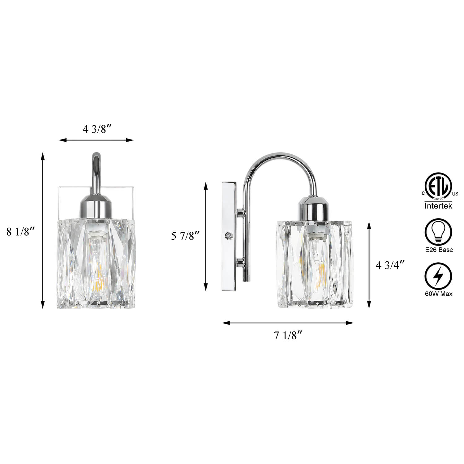 - E26 Medium BASE SOCKET: Bathroom vanity sconce lights is suggest to takes one maximum 60 watt Medium base bulbs (incandescent, CFL or LED compatible). Bulbs not included. Perfect fit in retro-vintage or modern styles decorates.