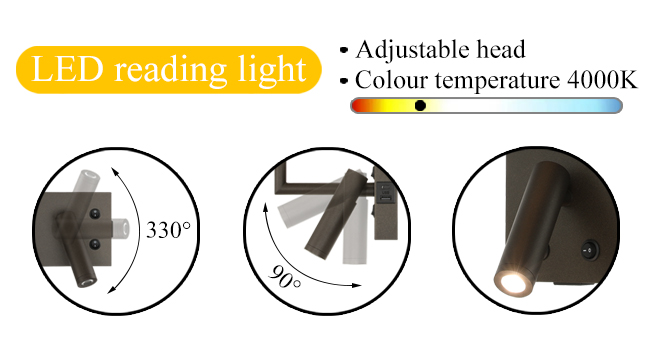 - MODERN DESIGNS: Bedroom wall sconces showcases a dark bronze-finished metal body with a LED reading light. 2-in-1 Wall Lamp can be rotate 330° for customized bedside or living room illumination; this reading wall sconce can be mounted horizontally, vertically, or side-mounted to best fit your wall layout.